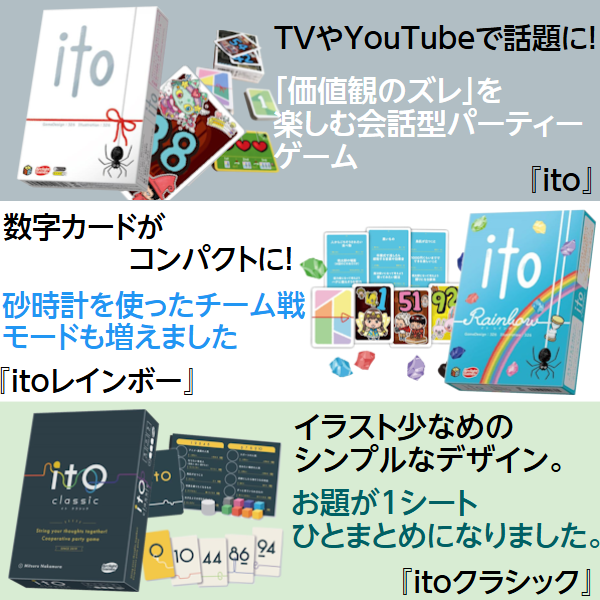 ドイツにて開催される世界最大のアナログゲームイベント『SPIEL Essen 2023』で販売した『ito(SPIEL Essen 2023 ver.)』の日本語版が登場!