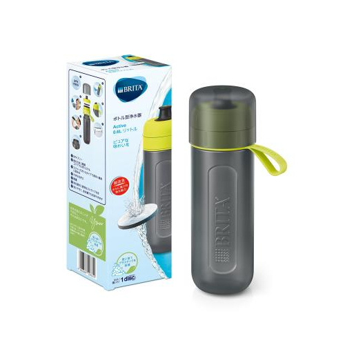 ブリタ ボトル型浄水器 アクティブ ライム マイクロディスク浄水フィルターつき KBACCL11 [0.6L 塩素除去 水アカ防止 スクイーズボトル 水筒]