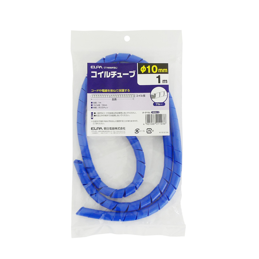 ELPA カラーコイルチューブ φ10mm 全長1m ブルー CT-N690P(BL) (結束用具 コード整理 事務 PC用品 電気配線 工事配線 電設資材 配線結束 エルパ) 爆買