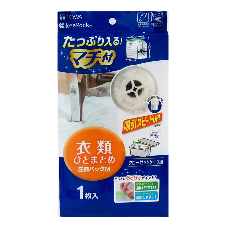 衣類圧縮パック M 80×80×32cm 1枚入 (圧縮袋 衣類収納 マチ付 東和産業)