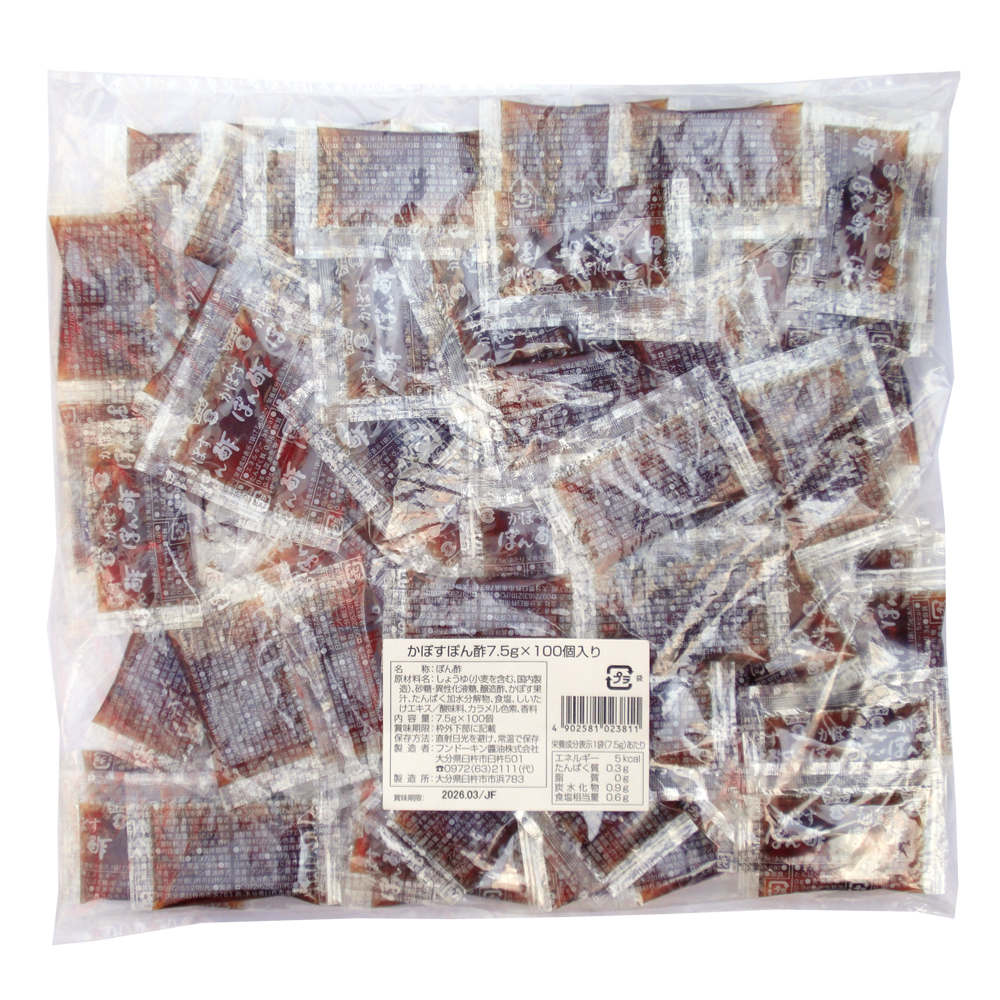 かぼすぽん酢 ミニ 7.5gx100個入 (カボス ポン酢 ポンズ カボス果汁 大分特産 使い切り 少量 調味料 お弁当 小袋 手軽 フンドーキン) 爆買