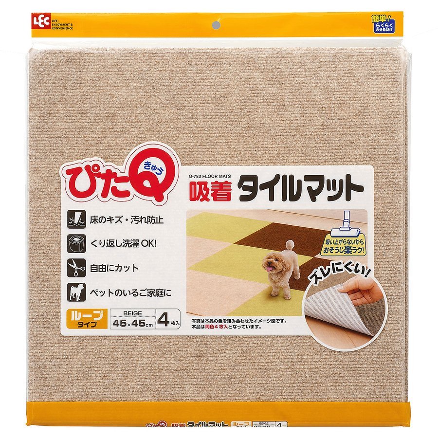 吸着タイルマット (45x45) 4枚入 BE O-783 レック [床マット 住居用マット 衝撃吸収マット 消音マット ジョイントマット](ポイント利用)