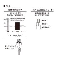 ● 難燃・耐熱ボディ:コンセント周りに熱に強いPBT樹脂使用