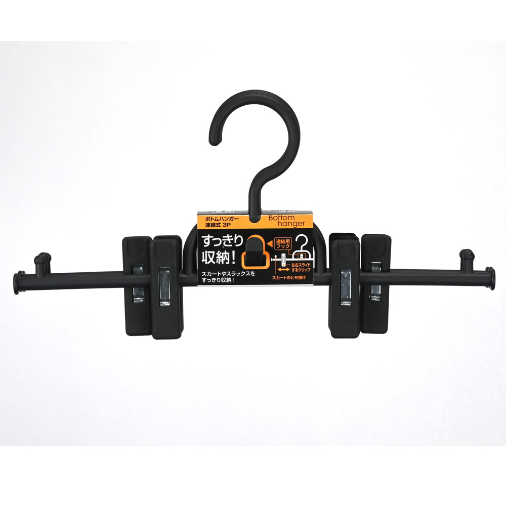 ボトムハンガー連結式 3P ブラック BOJ-03-BK (ボトムスハンガー ズボンスカート スラックス サワフジ) 爆買