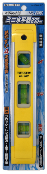 マグネット付ミニ水平器ML-230 トップマイティ [水平器 レベル 鳶 とび 配管 足場]