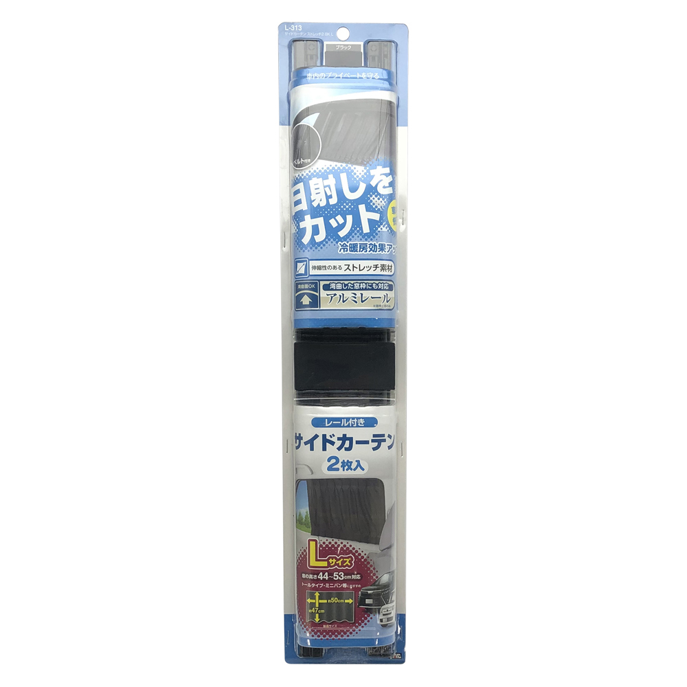 槌屋ヤック サイドカーテ ストレッチ2 BK L 2枚入 L-313 (カー用品 車内用品 遮光品 カーテン 日除け)