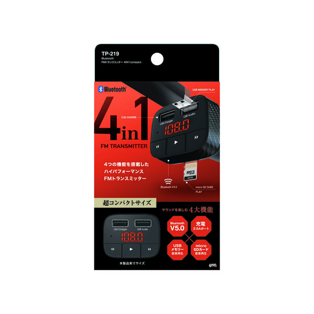 槌屋ヤック Bluetooth FMトランスミッター 4IN1 Compact TP219 (YAC オーディオ 音楽再生) 爆買