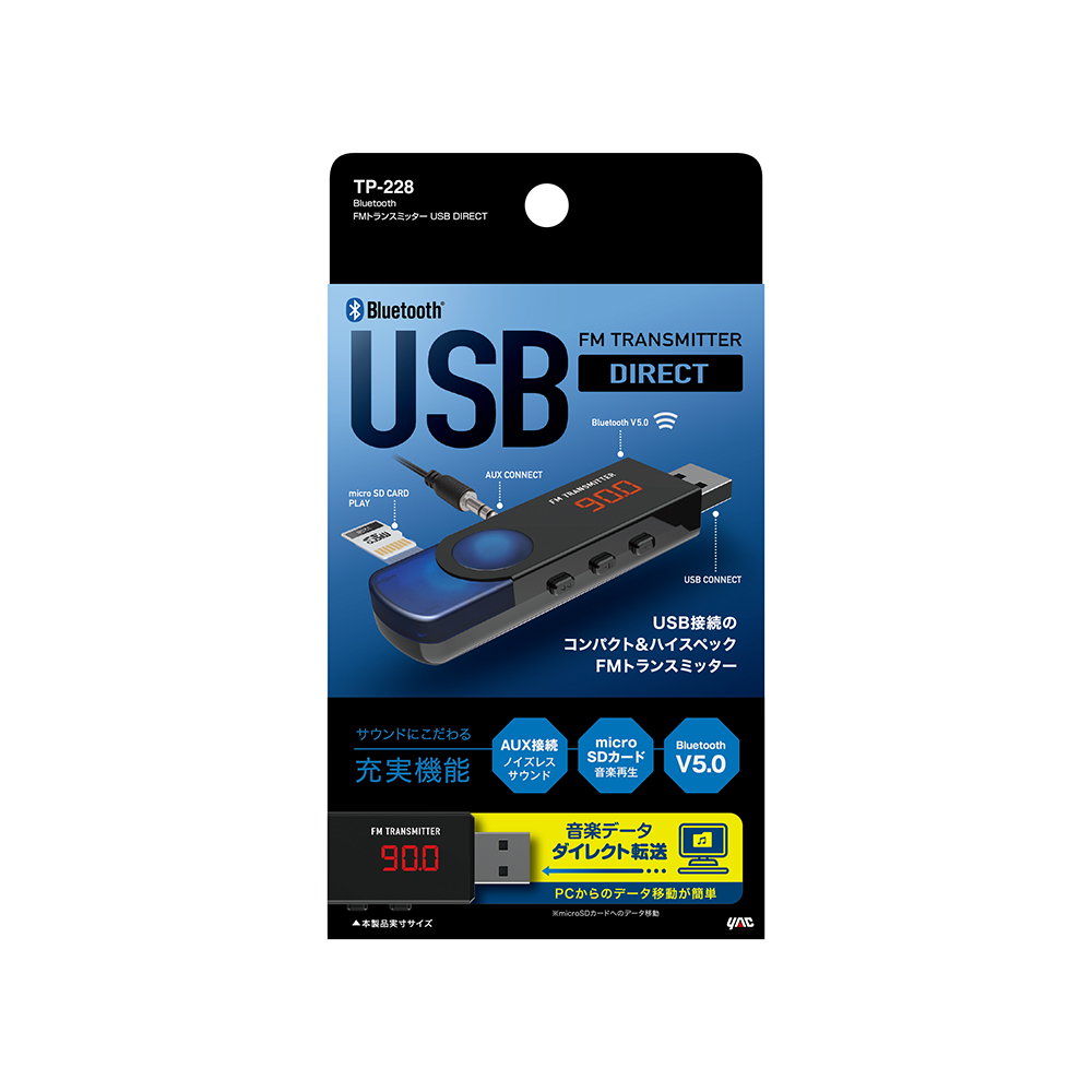 槌屋ヤック Bluetooth FMトランスミッター USB DIRECT TP228 (カー用品 車内用品 スマホ SD 音楽 )