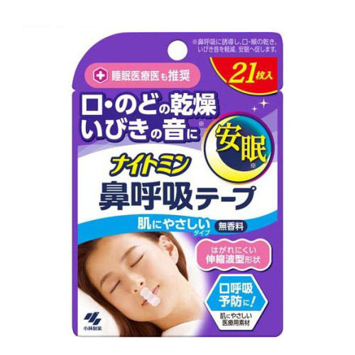 ★使用しない・本品は就寝時の口呼吸を予防するために使用し、用途以外には使用しない。・鼻づまりや鼻呼吸に障害をきたす疾患をもつ方、悪心や吐き気の症状のある時には使用しない。・自らの意思により本品を着脱することができない方(認知症者、飲酒時、睡眠薬服用時など)には使用しない。・乳幼児・小児には使用しない。・肌・唇がかぶれやすい人や、ニキビ、傷、はれもの、湿しんなどの異常がある場合は使用しない。★使用上の注意・汗をかいている場合、スキンケア製品を口周りに使用している場合、よく拭いてから使用する。また、貼り直しを繰り返すと、貼りつきが悪くなるのでなるべく避ける。・本品は使いきりとし、使用は1枚につき1回とする。・肌に強い違和感(かゆみ、痛みなど)を感じたり、皮ふに異常(ハレ、かぶれなど)が現れるなど、肌に合っていないと感じた場合は使用を中止する。肌に異常が残っている場合は本品を持参の上、皮ふ科専門医などに相談する。・本品の使用により気分が悪くなったり、息苦しくなった場合は使用を中止する。・口全体を塞がないように貼りつける。・薬を服用中の方や、治療器を使用している方は使用前に医師に相談する。