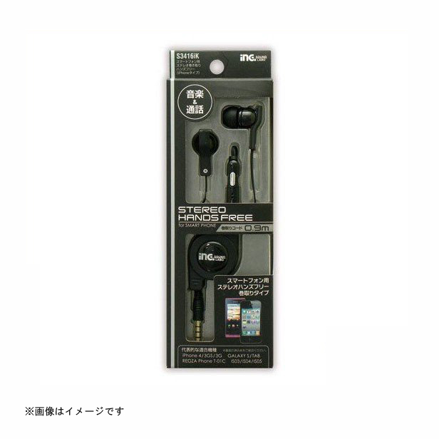 多摩電子 ステレオハンズフリー スマートフォン用ステレオ巻き取りハンズフリー iPhoneタイプ ブラック [品番:S3416iK] 多摩電子 [携帯関連 ステレオハンズフリー]