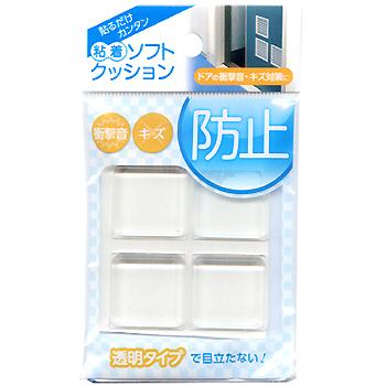 (メール便可)WAKI 和気産業 粘着ソフトクッション 角25.4mm×高さ4.7mm 4個入 CN-013 透明ウレタンタイプ 4903757211872