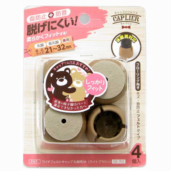 (ゆうパケットパフ可)WAKI 和気産業 ワイドフェルトキャップ 丸脚用M GK-702 ブラウン 4個入 21mm〜32mm用