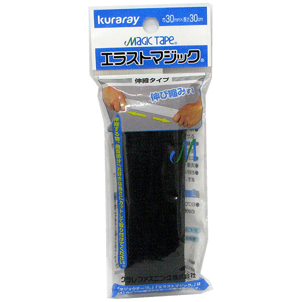 (メール便可)ユタカメイク クラレファスニング エラストマジック 伸縮タイプ 巾3cm×長さ30cm ブラック