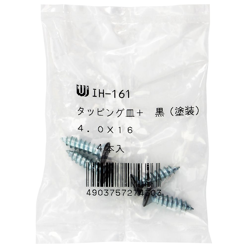 (メール便可)WAKI 和気産業 カラー特厚金折用タッピング 黒 4X16mm 4本入 IH-161