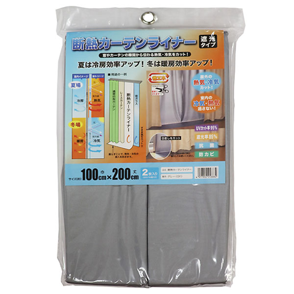 (メール便送料無料)明和グラビア 断熱カーテンライナー 遮光タイプ グレー 幅100cm×丈200cm 2枚入 Sカン14個入
