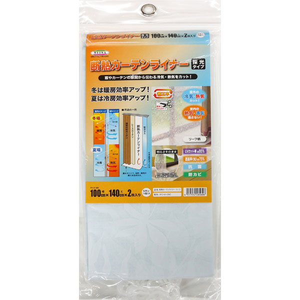 (メール便送料無料)明和グラビア 断熱カーテンライナー 採光タイプ リーフ柄 リーブズ ホワイト 幅100cm×丈140cm 2枚入 Sカン14個入