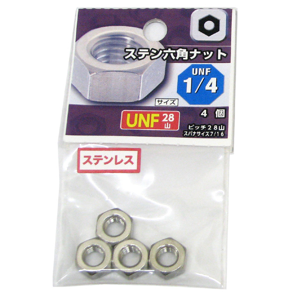 (メール便可)八幡ねじ ステン六角ナット UNF 細目 28山 1/4 4個入
