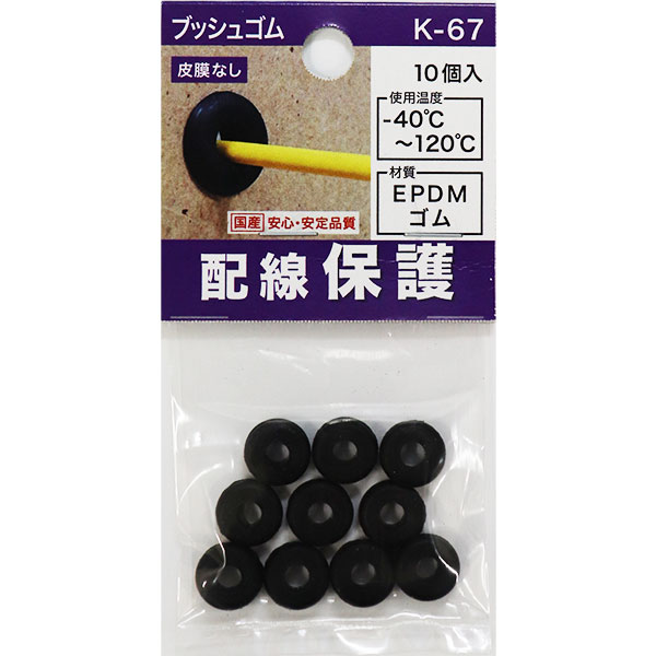 (メール便可)八幡ねじ ブッシュゴム 外径11mm×厚み4mm K-67 10個入