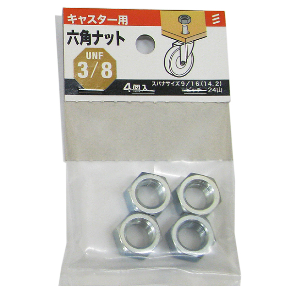 (メール便可)八幡ねじ キャスター用 六角ナット 細目 UNF3/8 ピッチ24山 4個入