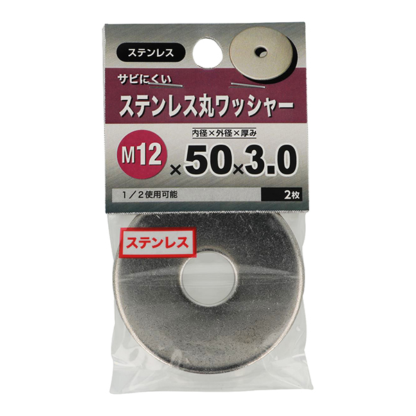 (メール便可)八幡ねじ ステンレス丸ワッシャー M12×50mm×3.0mm 2個入