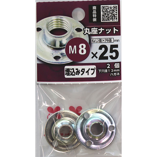 (メール便可)八幡ねじ 丸座ナット M8×25パイ 2個入