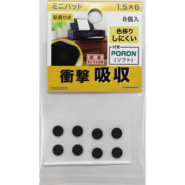 (メール便可)八幡ねじ Poron ミニパッド 衝撃吸収 ソフト 厚み1.5mm×外径6mm 8個入