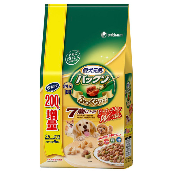 ユニ・チャーム 愛犬元気 パックン 7歳以上用 ビーフ・ささみ・緑黄色野菜・小魚入り 2.5kg 67652