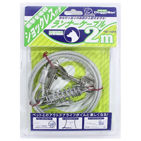 ドギーマン ランナーケーブル ショックレス付 2.0m ドギーマンハヤシ DoggyMan (コンパクト便可)