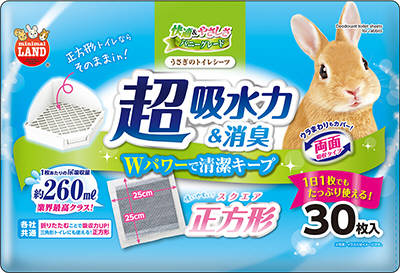 吸水力と消臭力に優れた正方形の両面吸収うさぎ用トイレシーツ。