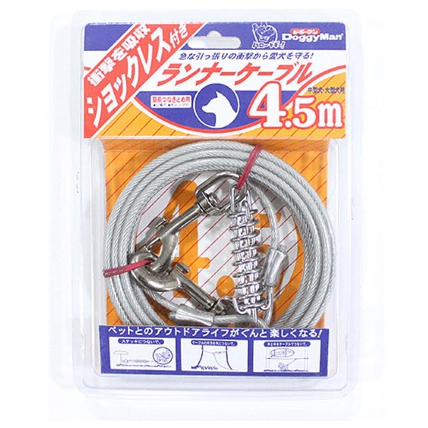 ドギーマン ランナーケーブル ショックレス付 4.5m ドギーマンハヤシ DoggyMan (コンパクト便可)