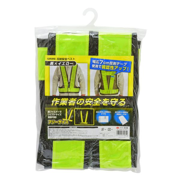 TAKAGI 反射安全ベスト 黒×イエロー 安全ベスト