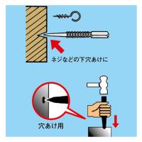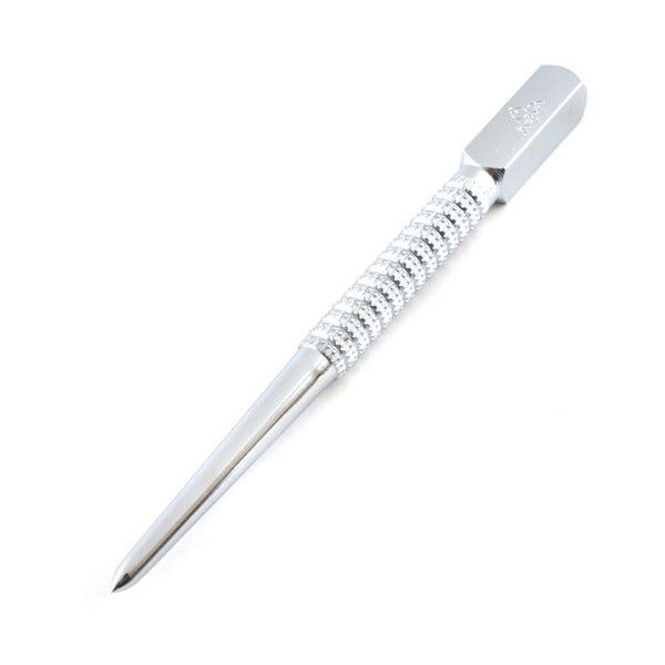滑りにくいローレット加工品です。頭は四角で転がらないです。先端部のみ焼入れを行い、反発を抑えています。先端部は耐久性を持たす為に、1本毎、職人が丸みもおびた研磨加工をしております。