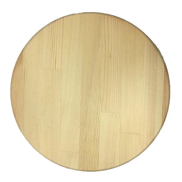 パイン集成材を丸板に加工しました。厚み部分にはR加工を施しました。テーブル天板としてご利用いただけます。