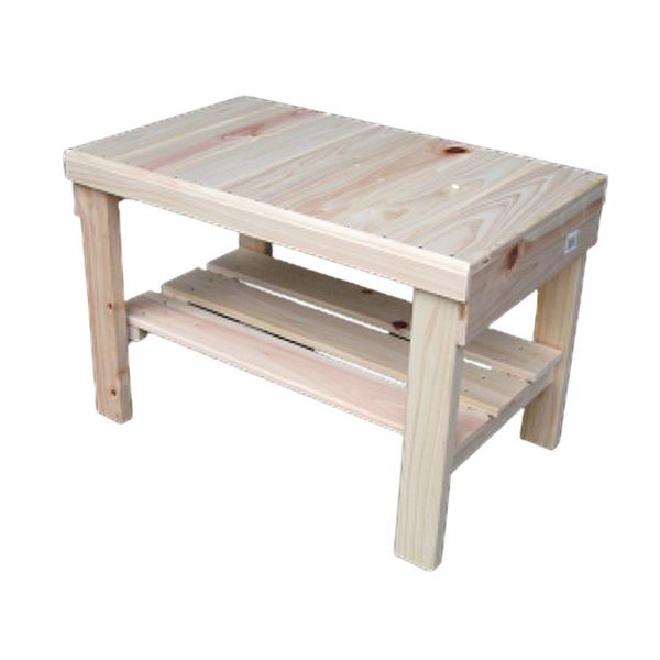 国産ひのき材使用。棚が付いて、収納にも便利なベンチです。