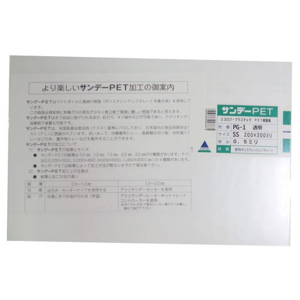 アクリサンデー サンデーPET PET樹脂板 透明 180mmx320mm 板厚0.5mm PG-1 SS0.5