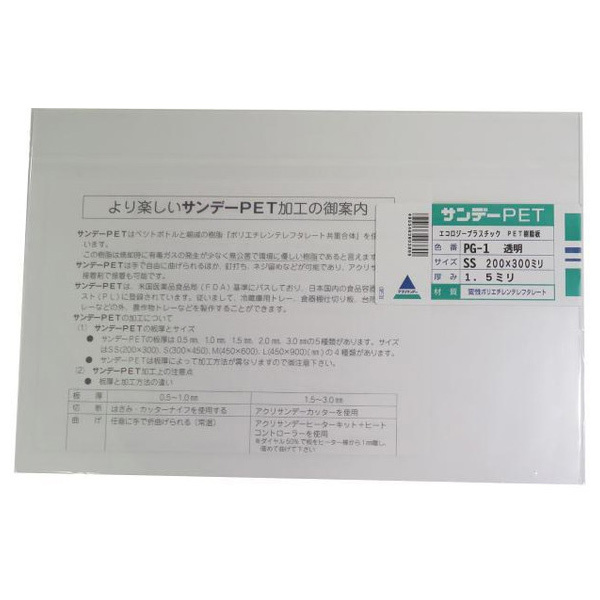アクリサンデー サンデーPET PET樹脂板 透明 180mmx320mm 板厚1.5mm PG-1 SS1.5