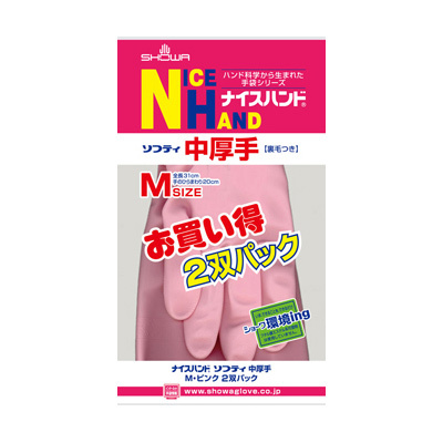 ショーワグローブ SHOWA ナイスハンドシリーズ ナイスハンド中厚手 2双パックMピンク (コンパクト便可)
