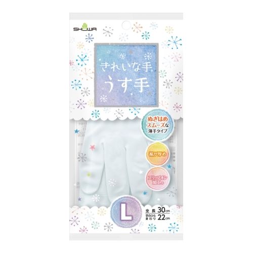 ●塩化ビニル製のため、天然ゴム製の手袋に比べて、洗剤や油に対して耐久性があります。