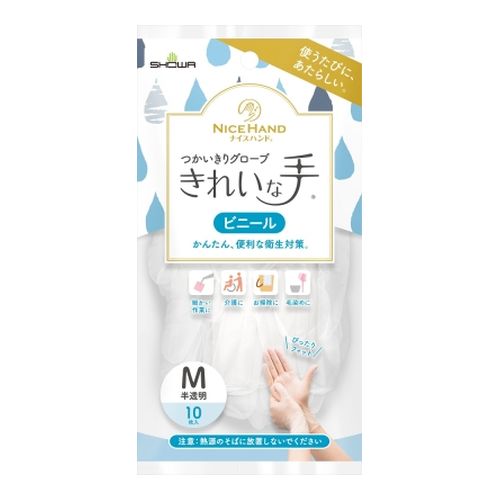 ナイスハンド きれいな手 つかいきりグローブ 手袋 ビニール 10枚入 M ショーワグローブ