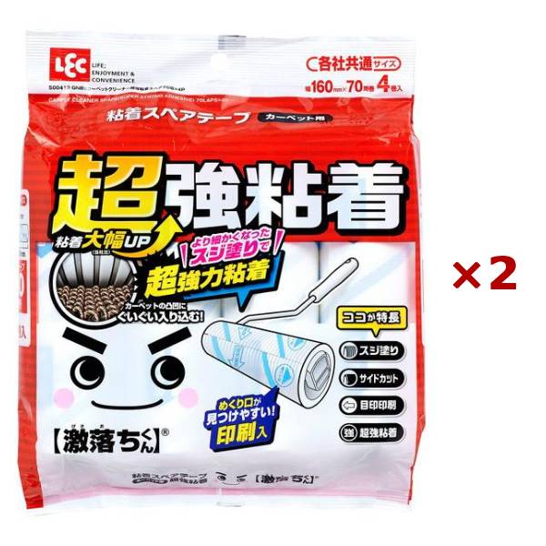 まとめ買い×2セット レック 激落ちくん カーペットクリーナー 超強力粘着タイプ 70周 スペア 4個入り S00410