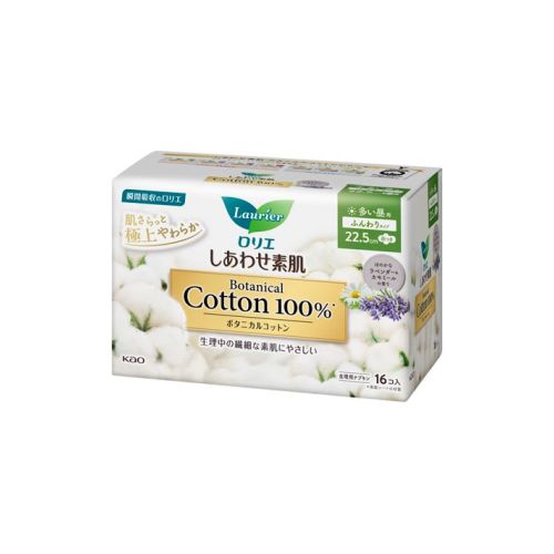 訳あり ロリエ しあわせ素肌 Botanical Cotton100 多い昼用22.5cm 羽つき 16個 生理用ナプキン 花王