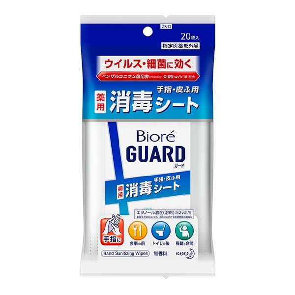 商品の名称:花王 ビオレガード 薬用消毒シート 手指・皮ふ用 20枚入(医薬部外品)