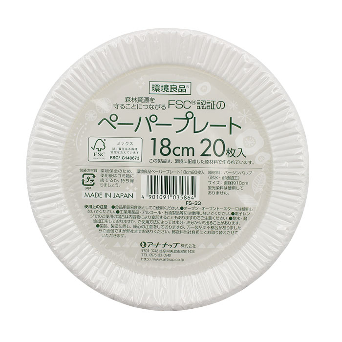 FSー33 環境良品ペーパープレート18CM キッチン アウトドア アートナップ (コンパクト便可)