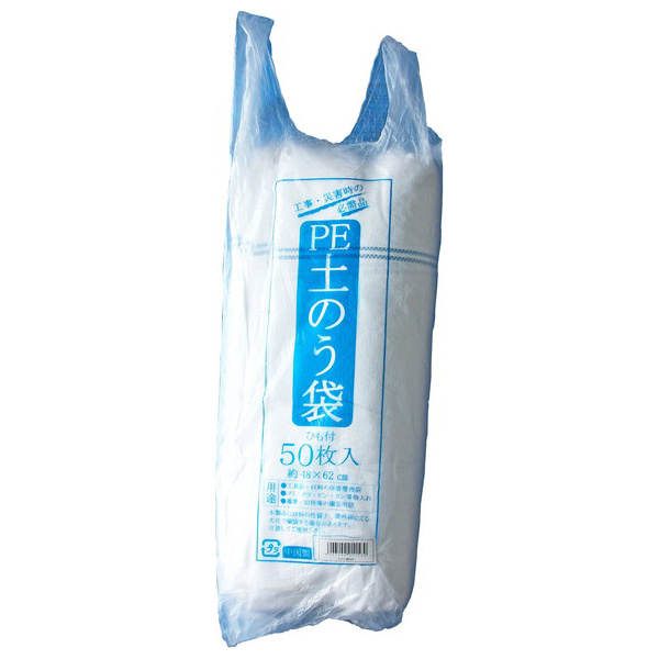 50枚入の土のう袋。工具袋、材料の保管整理袋、ゴミ、ガラ、ビソ、ガソ等物入れ、切枝等の園芸用袋としてお使いいただけます。