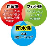 ●ダブルコーティングによる耐油性・防水性に加え、すべり止め層グリップ力にも優れます。
