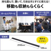 ●ポールを立てて引き出したスクリーンを掛けるだけで設置できる、床置き式のプロジェクタースクリーンです。