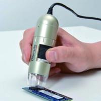 ●対象物にすりつけた状態だと約55倍と約200倍でピントが合い、最大で230倍まで拡大可能な30万画素のPC接続モデルマイクロスコープです。