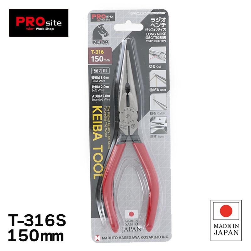 ラジオペンチ テレフォンタイプ 150mm T-316S スプリング付 切る 曲げる 掴む 回す強力用 日本製 PROsite