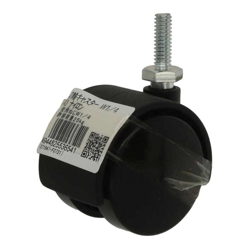 ●用途:デザインキャスター(双輪タイプ)として使用。椅子、机などに。●材質:車輪(ナイロン) ●規格:インチねじ ●呼び径:1/4 ●長さ・厚み:40 ●ピッチ:20山