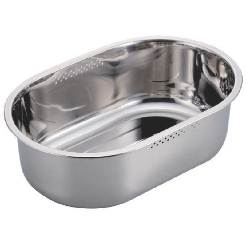 ステンレス製スリム小判型洗桶でサイズは37.5×25.5cmです